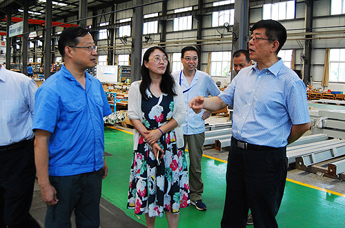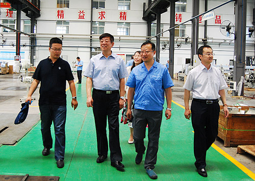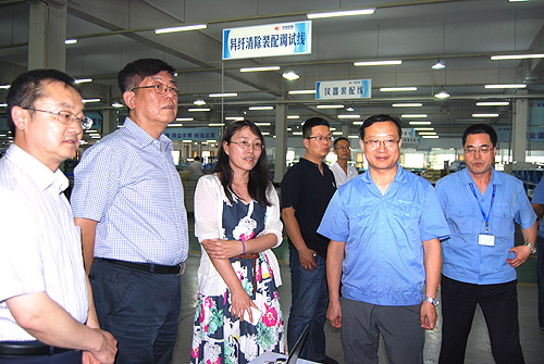 總經理雷濤陪同王樹田會長一行先后參觀了公司研發(fā)部門、紡織儀器制造車間、噴氣織機制造車間等。