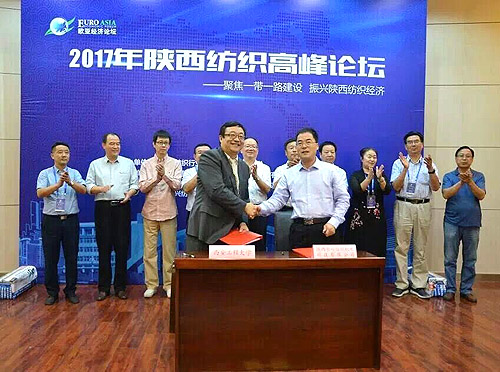 作為2017年歐亞論壇的活動(dòng)之一,2017年陜西紡織高峰論壇9月22日在古城西安舉行。由陜西紡織行業(yè)協(xié)會(huì)與西安工程大學(xué)共同主辦,咸陽(yáng)紡織集團(tuán)有限公司、西安紡織集團(tuán)有限公司、陜西長(zhǎng)嶺紡織機(jī)電科技有限公司、際華3513實(shí)業(yè)有限公司、咸陽(yáng)新興紡織工業(yè)園管委會(huì)協(xié)辦。本次論壇主題為“聚焦一帶一路建設(shè),振興陜西紡織經(jīng)濟(jì)”, 旨在進(jìn)一步調(diào)動(dòng)各方面的積極性,通過(guò)了解國(guó)內(nèi)外紡織行業(yè)形勢(shì),了解國(guó)家關(guān)于一帶一路的政策;通過(guò)交流發(fā)展經(jīng)驗(yàn),相互促進(jìn)提高,真正做到資源共享,優(yōu)勢(shì)互補(bǔ),努力促進(jìn)陜西紡織又快又好地向前發(fā)展。論壇的成功召開(kāi)必將為陜西紡織行業(yè)提供更為廣闊的發(fā)展空間,打造產(chǎn)業(yè)互補(bǔ)、協(xié)同發(fā)展的合作新格局,為陜西紡織帶來(lái)勃勃生機(jī),為“一帶一路”涂寫(xiě)出紡織工業(yè)的光彩。