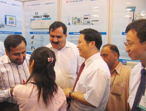 巴基斯坦紡紗生產(chǎn)規(guī)模為1000萬(wàn)錠。第四屆巴基斯坦紡機(jī)展4月13~16日在卡拉奇展覽中心舉行。本屆展覽會(huì)共設(shè)四個(gè)展館,總面積9000平方米,有來(lái)自土耳其、中國(guó)等22個(gè)國(guó)家和地區(qū)的312家參展商參加了展覽。參展的實(shí)物主要是紡紗、針織、印染設(shè)備及其配件,展會(huì)期間參觀者累計(jì)達(dá)到40000人次。長(zhǎng)嶺紡電公司這次參展,占據(jù)了一個(gè)獨(dú)立的標(biāo)準(zhǔn)展位,參展的實(shí)物有YGl36條干儀、YG036單紗強(qiáng)力儀、YG172A紗線毛羽儀及DQSS-18清紗器電控箱,并帶有大量公司簡(jiǎn)介、參展產(chǎn)品及XJ120棉纖維測(cè)試儀掛圖。據(jù)總經(jīng)理薛冬泉介紹,在四天的展覽中,來(lái)長(zhǎng)嶺展臺(tái)參觀的客人很多,YGl36條干儀和YG063單強(qiáng)樣機(jī)在展會(huì)上就被巴方用戶購(gòu)買(mǎi)。展會(huì)期間,長(zhǎng)嶺共接待客戶2000多人,散發(fā)各類產(chǎn)品樣本3000多本。其中,有意向購(gòu)買(mǎi)長(zhǎng)嶺紗線實(shí)驗(yàn)室儀器的客戶59家,有意向購(gòu)買(mǎi)XJ120的客戶5家,有意向購(gòu)買(mǎi)自動(dòng)電沾的客戶8家。展會(huì)前后,總經(jīng)理薛冬泉還走訪了10家紡織廠,其中5家未使用過(guò)長(zhǎng)嶺紡電的廠家都表示了購(gòu)買(mǎi)意向。展會(huì)結(jié)束后,長(zhǎng)嶺紡電還在卡拉奇和拉合爾舉辦了兩場(chǎng)產(chǎn)品推介會(huì),薛冬泉總經(jīng)理和技術(shù)人員分別介紹了公司基本情況及主要產(chǎn)品情況。兩場(chǎng)推介會(huì)共有150多個(gè)紡紗廠的老板或技術(shù)主管參加。