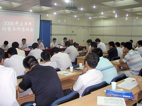 7月3日公司召開(kāi)了2006年上半年銷(xiāo)售工作總結(jié)會(huì),會(huì)議全面總結(jié)了上半年的銷(xiāo)售工作,并對(duì)下半年的銷(xiāo)售工作進(jìn)行整體部署。會(huì)議由公司副總經(jīng)理、銷(xiāo)售公司經(jīng)理董靜洲主持。