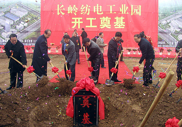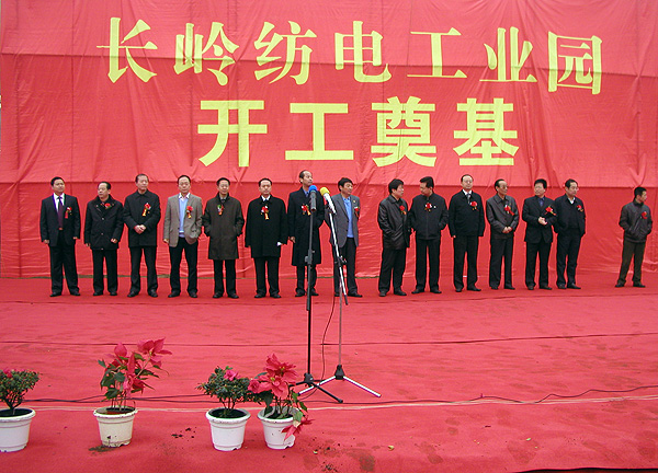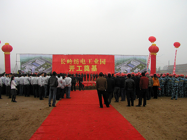 2007年2月28日上午,長(zhǎng)嶺紡電工業(yè)園在工地現(xiàn)場(chǎng)舉行了盛大的開(kāi)工奠基儀式。慶典現(xiàn)場(chǎng)鑼鼓喧天,彩旗飄揚(yáng),一派歡快熱鬧的氣氛。慶典儀式由長(zhǎng)嶺集團(tuán)黨委書(shū)記、總經(jīng)理、公司董事長(zhǎng)李強(qiáng)主持,省國(guó)資委、省信息產(chǎn)業(yè)廳、寶雞市四套班子領(lǐng)導(dǎo)、寶雞高新區(qū)管委會(huì)、中國(guó)紡織報(bào)社及有關(guān)單位的領(lǐng)導(dǎo)和各界代表參加了奠基儀式。