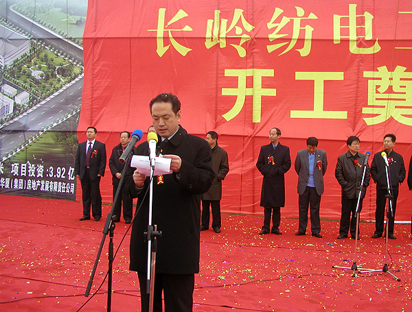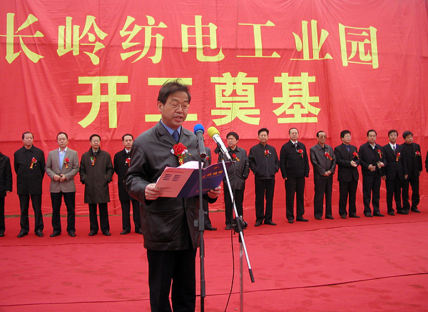 10點(diǎn)半,開(kāi)工慶典儀式在歡快的鑼鼓聲與震耳的禮炮聲中拉開(kāi)帷幕。李董事長(zhǎng)宣讀了陜西省副省長(zhǎng)吳登昌的賀信;公司總經(jīng)理薛冬泉在熱烈的掌聲中致詞,對(duì)各級(jí)領(lǐng)導(dǎo)、各位來(lái)賓長(zhǎng)期以來(lái)對(duì)長(zhǎng)嶺紡電的大力支持表示衷心感謝,長(zhǎng)嶺紡電將不斷增強(qiáng)企業(yè)核心競(jìng)爭(zhēng)力,為振興陜西裝備制造業(yè)做出貢獻(xiàn),為紡織行業(yè)技術(shù)升級(jí)做出不懈努力;寶雞華夏集團(tuán)總經(jīng)理張寶祥代表代建商講話,表示要以一流的工程質(zhì)量,為寶雞高新區(qū)建設(shè)再添亮點(diǎn);常務(wù)副市長(zhǎng)郭社榮代表市委、市政府、高新區(qū)管委會(huì)發(fā)表了熱情洋溢的講話,對(duì)開(kāi)工奠基表示衷心的祝賀。最后市委姚書(shū)記宣布開(kāi)工令,禮炮聲、鞭炮聲伴著全場(chǎng)熱烈的掌聲響徹云霄,與會(huì)領(lǐng)導(dǎo)和代表為長(zhǎng)嶺紡電工業(yè)園開(kāi)工奠基揮鍬培土,奠基儀式圓滿(mǎn)結(jié)束。