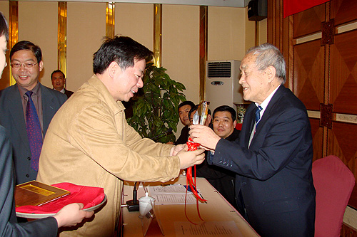 在“紡織測量與控制工程技術(shù)研究中心”的揭牌儀式上,長嶺紡電對(duì)多年來幫助和支持長嶺紡電事業(yè)發(fā)展的中國工程院院士梅自強(qiáng)、中國工程院院士姚穆授予“長嶺紡電特別貢獻(xiàn)獎(jiǎng)”進(jìn)行了表彰獎(jiǎng)勵(lì),寶雞市副市長徐強(qiáng)、長嶺紡電董事長李強(qiáng)向院士頒發(fā)了獲獎(jiǎng)證書和獎(jiǎng)杯,表彰他們?yōu)殚L嶺紡電的發(fā)展、為中國紡織電子儀器的發(fā)展做出的貢獻(xiàn)。