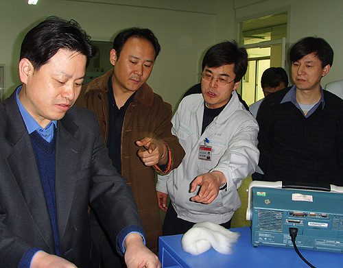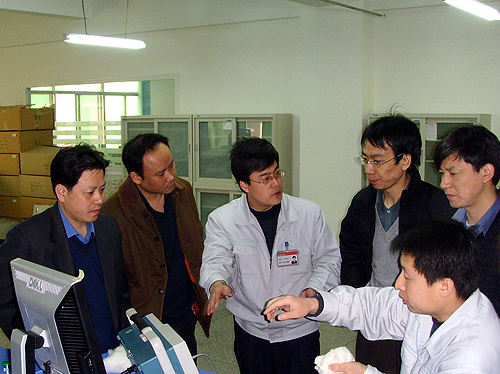 中國纖維檢驗(yàn)局總工程師徐水波、棉花質(zhì)量監(jiān)督處副處長于小新、熊宗偉、儀器計(jì)量科主任張保國及陜西省纖維檢驗(yàn)局局長仲學(xué)憲一行5人在公司總經(jīng)理薛冬泉的陪同下參觀了產(chǎn)品陳列室和生產(chǎn)線,了解了公司發(fā)展和產(chǎn)品研發(fā)生產(chǎn)情況,特別是對我公司棉纖維檢測儀器的研制情況進(jìn)行了詳細(xì)了解,與工程技術(shù)人員就產(chǎn)品研發(fā)進(jìn)行了座談,對我公司棉纖維檢測儀器的研發(fā)進(jìn)行了技術(shù)指導(dǎo)。希望長嶺紡電按照國家棉花質(zhì)量檢驗(yàn)體制改革的要求,繼續(xù)加快產(chǎn)品研發(fā)進(jìn)度,盡快推出適應(yīng)國際標(biāo)準(zhǔn)、滿足市場需求的棉纖維檢測儀器,為推進(jìn)我國棉花質(zhì)量檢驗(yàn)體制改革發(fā)揮積極作用。