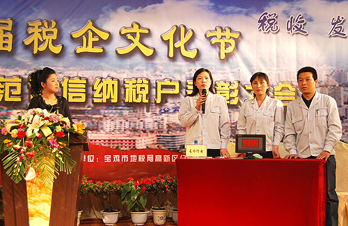 為廣泛深入宣傳普及稅法知識,進一步提高納稅人依法、誠信納稅意識,建立和諧融洽的稅企關系,寶雞高新區(qū)地稅局舉辦了首屆稅企文化節(jié),開展了豐富多彩的征文、書畫、文藝演出等活動。本次知識競賽共有六支代表隊參賽,競賽分四個環(huán)節(jié),分別是必答題、搶答題、判斷題、風險題。我公司參賽選手經(jīng)過認真仔細的準備,表現(xiàn)突出,對答如流。為給競賽隊加油,展示長嶺紡電公司風采,公司還組織了加油方隊,臺上沉著應對,臺下掌聲陣陣,充分展示了長嶺紡電員工豐富的稅法知識、過硬的心理素質以及良好的團隊精神。經(jīng)過四個環(huán)節(jié)的緊張競賽,最終紡電公司代表隊獲得一等獎,蒙牛集團、中鐵電氣化獲得二等獎,凌云集團等三家單位獲得三等獎。