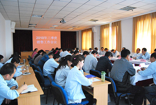 會(huì)上,銷售公司經(jīng)理張寶生全面總結(jié)了前三季度的營銷工作,就如何完成2010年銷售回款任務(wù)和后期的工作重點(diǎn)制定措施,債權(quán)辦通報(bào)了公司當(dāng)前債權(quán)債務(wù)情況,各片區(qū)業(yè)務(wù)人員針對(duì)本地區(qū)市場(chǎng)情況、競爭對(duì)手動(dòng)態(tài)、現(xiàn)有產(chǎn)品質(zhì)量、需公司幫助解決的問題及對(duì)市場(chǎng)的預(yù)測(cè)等做了詳盡的匯報(bào)。黨總支書記高金寬、總工程師呂志華、副總經(jīng)理趙利等領(lǐng)導(dǎo)就新產(chǎn)品開發(fā)、質(zhì)量管理工作、應(yīng)收帳款清欠、營銷技巧等問題講了話,各相關(guān)部門針對(duì)銷售人員提出的各類問題逐一進(jìn)行解答。