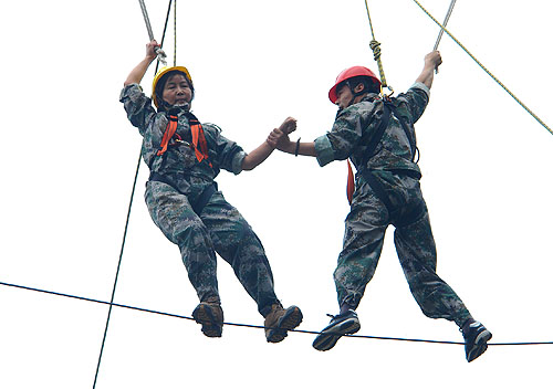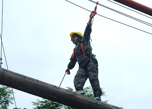 過高空獨木橋這個項目讓我感悟到:1.工作中遇到困難一定要去嘗試克服,有些事情看起來容易做起來難,只要勇敢的邁出第一步,困難也不是困難了,其實只是原先把困難無限地放大了。
