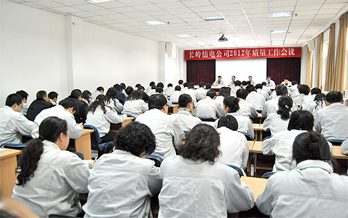 2月23日下午,公司在第二會議室召開了“2012年紡電公司質(zhì)量工作會議”。會議由總經(jīng)理薛冬泉主持,公司領導、各部門主管領導、室主任及質(zhì)管員等70余人參加了會議。
