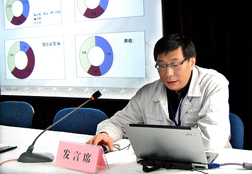 首先,副總質(zhì)量師、質(zhì)管部部長張寶生匯報2011年紡電公司質(zhì)量工作情況,在肯定過去一年質(zhì)量工作的同時,通過圖表全面分析了公司在物資采購、生產(chǎn)過程、新品研發(fā)等工作中出現(xiàn)的質(zhì)量問題和不足,并就2012年質(zhì)量工作計劃進行安排。2012年公司質(zhì)量工作將“以用戶滿意作為產(chǎn)品質(zhì)量的唯一標準,全員參與,持續(xù)改進,嚴格考核,以優(yōu)異的工作質(zhì)量保證產(chǎn)品質(zhì)量”為指導思想,明確以下工作重點:1.加強產(chǎn)品設計質(zhì)量的控制,嚴格新產(chǎn)品的測試;2.加大對重點產(chǎn)品噴氣織棉花異纖清除機、自絡電清、棉纖維測試儀的質(zhì)量改進,提升產(chǎn)品的質(zhì)量;3.加強供貨質(zhì)量控制,提高外購、外協(xié)件的供貨質(zhì)量;4.實施全面質(zhì)量責任考核,提升全員質(zhì)量意識。