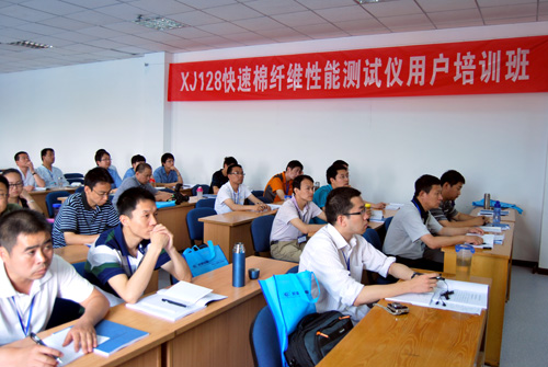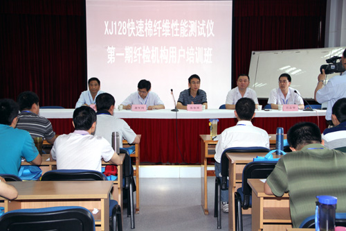 此次培訓(xùn)是長嶺紡電公司針對“XJ128快速棉纖維性能測試儀”產(chǎn)品舉辦的第一期用戶培訓(xùn)班。培訓(xùn)班歷時(shí)7天,辦學(xué)方式采用理論講授和現(xiàn)場教學(xué)相結(jié)合,產(chǎn)品研發(fā)人員與客戶面對面交流,解疑釋惑。從產(chǎn)品測量原理、使用方法、日常維護(hù)及故障處理等方面進(jìn)行詳細(xì)的論述。中纖局測試中心張保國主任在開班儀式上要求各位學(xué)員通過這次難得的學(xué)習(xí)機(jī)會(huì),與老師、專家充分交流,虛心請教,真正成為國產(chǎn)“HVI”應(yīng)用的行家里手。