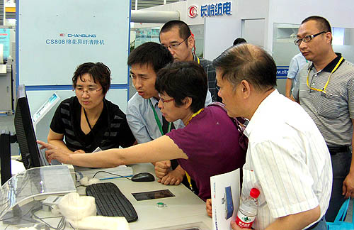 公司此次與恒鑫紡機聯(lián)合參展,展出面積300平方米,參展的25產(chǎn)品中有9個新產(chǎn)品首次亮相,全面展示了企業(yè)近年來的科技創(chuàng)新成果和整體實力。首次展出的CT4000條干儀、CF200棉纖維性能測試儀、CN200棉結測試儀、FS220自動光電驗布機、CS808棉花異纖清除機等9個新產(chǎn)品引起用戶和專家的關注,成為展覽會上的亮點。在展覽會上,公司還通過專題采訪和《每日展報》等形式,對公司進行了詳盡的宣傳和報道,全方位宣傳企業(yè)的科技創(chuàng)新。