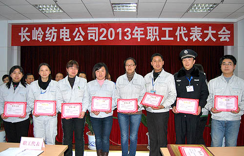 2月1日,長嶺紡電公司2013年職工代表大會(huì)在公司第二會(huì)議室召開,100名員工代表和11名列席代表參加了會(huì)議。長嶺電氣公司董事長、黨委書記、紡電公司董事長張寶會(huì)參加會(huì)議,并作講話。