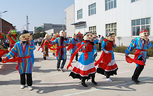 由公司年輕人組成的社火表演隊(duì),精神抖擻,隨著歡快的新年樂曲,舞動(dòng)著跳躍的舞步,臉上洋溢著對(duì)幸福的憧憬和渴望,濃濃的年味十足。