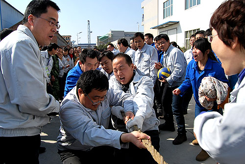隨后,紡電公司9個(gè)分會(huì)、14個(gè)部門的300多名員工參加了運(yùn)動(dòng)會(huì)。此次運(yùn)動(dòng)會(huì)設(shè)置了“拔河、齊心協(xié)力綁腿跑、傳球接力、”三個(gè)項(xiàng)目。各分會(huì)和各參賽部門都認(rèn)真對(duì)待,積極組織訓(xùn)練,各部門也給予全力支持。運(yùn)動(dòng)會(huì)本著“友誼第一、比賽第二”的原則,賽場上隊(duì)員全力以赴、斗志昂揚(yáng),比賽緊張激烈、精彩紛呈,展現(xiàn)了紡電員工的活力和激情。經(jīng)過激烈的角逐,織機(jī)制造部分會(huì)和紡研所分會(huì)分獲傳球接力比賽第一、二名;綁腿跑比賽前兩名分別為紡電制造部分會(huì)和紡研所分會(huì);紡電制造部分會(huì)和保衛(wèi)部機(jī)關(guān)一分會(huì)聯(lián)隊(duì)分獲拔河比賽前兩名。