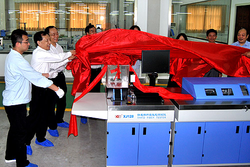 5月23日,由國家質(zhì)量監(jiān)督檢驗檢疫總局組織的國產(chǎn)棉花綜合性能測試儀批量裝備儀式在公司隆重舉行,由公司潛心研制的XJ128快速棉纖維性能測試儀批量交付使用。這既標(biāo)志著我國擁有自主知識產(chǎn)權(quán)的棉花性能綜合測試儀的研制取得成功,我國棉花質(zhì)量檢驗體制改革邁出了重要一步,也標(biāo)志著國外壟斷多年的棉花綜合性能測試儀器局面從此被打破,國產(chǎn)棉花綜合測試儀開始批量裝備全國,這也是對長嶺紡電公司多年堅持科技創(chuàng)新、實現(xiàn)了企業(yè)技術(shù)升級和產(chǎn)品結(jié)構(gòu)調(diào)整的充分肯定。