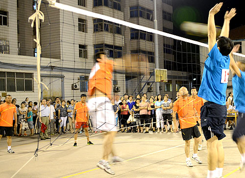 紡電公司男子排球隊(duì)由6名老隊(duì)員和7名新隊(duì)員組成,以老帶新旨在培養(yǎng)、鍛煉隊(duì)伍,為今后的比賽打好基礎(chǔ)。訓(xùn)練時(shí),球隊(duì)制定了嚴(yán)密的訓(xùn)練計(jì)劃,教練認(rèn)真負(fù)責(zé),對(duì)新隊(duì)員從發(fā)球、墊球這些最基本的項(xiàng)目開(kāi)始訓(xùn)練,老隊(duì)員不遺余力言傳身教,大家克服各種困難,頂著烈日積極訓(xùn)練,每場(chǎng)下來(lái)各個(gè)都是汗流浹背;尤其是保衛(wèi)部的3名年輕隊(duì)員,每次上完夜班還沒(méi)有回去休息就加入訓(xùn)練當(dāng)中,從沒(méi)有拉下一次訓(xùn)練,受到大家的一致贊揚(yáng)。經(jīng)過(guò)一個(gè)月的艱苦訓(xùn)練,新隊(duì)員們從最初的不會(huì)墊球,到最終能夠穩(wěn)健的發(fā)球、接球;隊(duì)員們的皮膚也從白皙逐漸變得黝黑,大家都親切地稱他們?yōu)椤袄虾诤托『凇?。比賽?chǎng)上,他們個(gè)個(gè)奮勇拼搏,經(jīng)過(guò)三輪激烈的廝殺,紡電男子排球隊(duì)打出了威風(fēng),打出了氣勢(shì),最終以第三名的好成績(jī)?yōu)榻衲甑呐徘虮荣惍?huà)上了圓滿的句號(hào)。