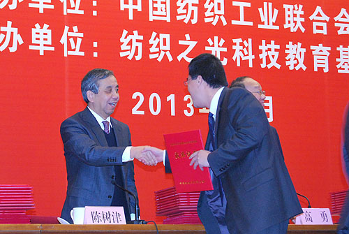 表彰會上,中國紡織工業(yè)聯(lián)合會高勇副會長宣布了2013年度中國紡織工業(yè)聯(lián)合會科學技術獎獲獎名單;副會長孫瑞哲作重要講話,代表中國紡織工業(yè)聯(lián)合會向全體獲獎企業(yè)和人員表示熱烈祝賀,他說,世界經濟競爭格局發(fā)生了深刻變化,當前和今后一段時期紡織科技創(chuàng)新與人才培養(yǎng)面臨新的機遇與挑戰(zhàn),希望全行業(yè)滿懷信心,把握大勢,塑造紡織科技創(chuàng)新與人才培養(yǎng)新優(yōu)勢。