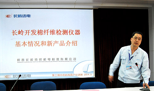 公司總經(jīng)理薛冬泉致歡迎詞,歡迎來自全國(guó)各地纖檢機(jī)構(gòu)的學(xué)員,同時(shí)介紹了長(zhǎng)嶺紡電作為全國(guó)最大的紡織電子儀器設(shè)備研發(fā)基地在棉纖維性能測(cè)試和檢測(cè)儀器研制和生產(chǎn)方面的最新發(fā)展,希望學(xué)員通過培訓(xùn),加強(qiáng)長(zhǎng)嶺紡電與各纖檢機(jī)構(gòu)的緊密配合,推動(dòng)棉花性能測(cè)試儀國(guó)產(chǎn)化的步伐。