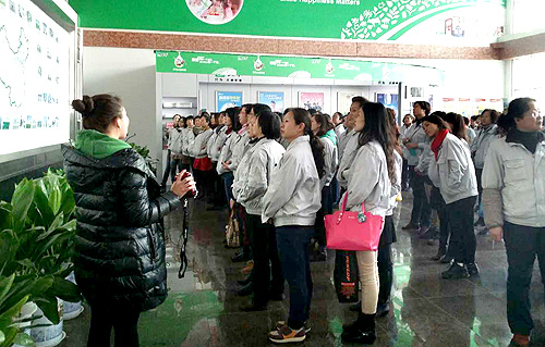 3月6日下午,在“長(zhǎng)嶺紡電”大旗的帶領(lǐng)下,近二百人的隊(duì)伍浩浩蕩蕩,一路上歡聲笑語(yǔ),精神抖擻。午后的陽(yáng)光懶懶地灑在大家的身上,和暖的春風(fēng)輕輕地拂過大家的臉上,高新大道上洋溢著濃厚的快樂氣氛和勃勃生機(jī)。在蒙牛公司寬敞明亮的廠房里,大家參觀了生產(chǎn)車間、檢測(cè)工序流程,不僅滿足了對(duì)生產(chǎn)牛奶過程的好奇心,也學(xué)習(xí)到了先進(jìn)的管理理念。