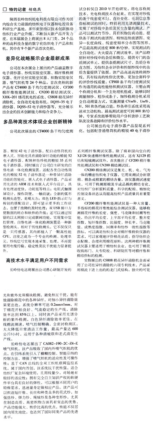 【中國紡織報】長嶺紡電新產品彰顯紡織電子技術實力