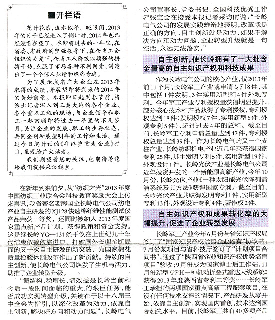 來(lái)自長(zhǎng)嶺電氣公司自主創(chuàng)新工作的報(bào)告