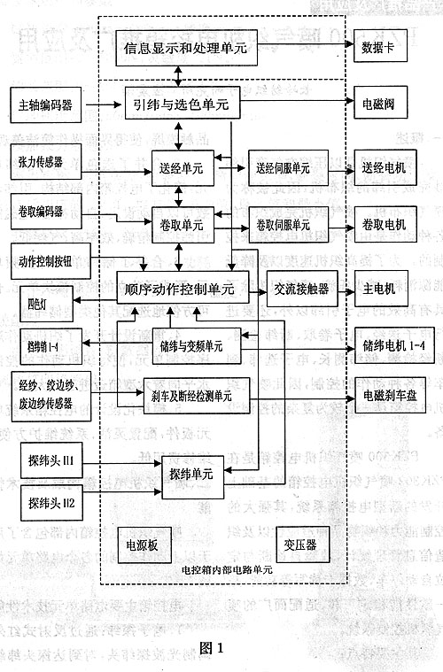 噴氣織機(jī)電控箱內(nèi)部包含了用于以上動作控制的各個電路單元如圖1。
