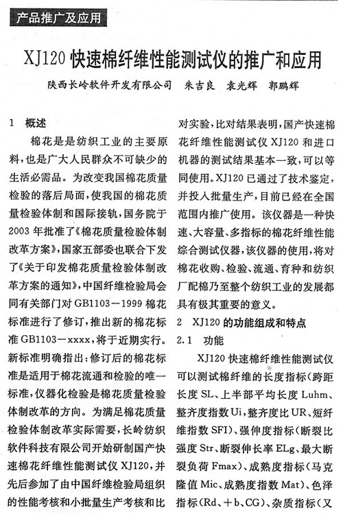 XJ120快速棉纖維性能測(cè)試儀的推廣和應(yīng)用