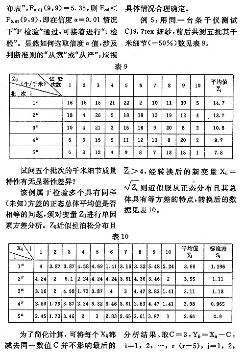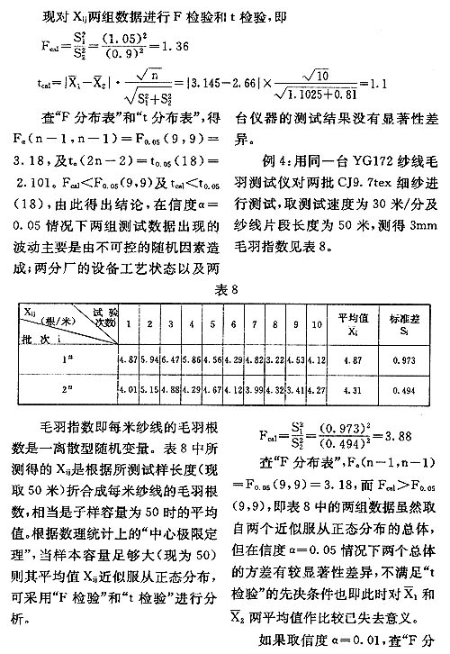 紗線測試結(jié)果的統(tǒng)計分析