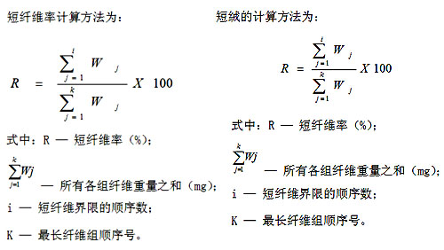 c) 短纖維含量(Short Fibre Content ):又稱短絨率,指纖維長度短于某一長度的纖維重量(根數(shù))占試樣總重量(根數(shù))的百分比。在快速測量短絨的測試儀中有以下幾種短絨率: