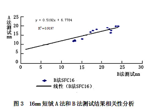 4.2.1 短絨快速測(cè)量?jī)x和手工測(cè)試方法16mm重量短絨率測(cè)量結(jié)果的相關(guān)性分析