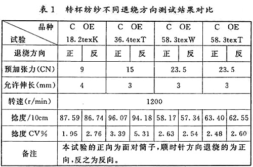 1 對(duì)于平行筒子轉(zhuǎn)杯紡紗捻度測(cè)試時(shí)統(tǒng)一方向退繞