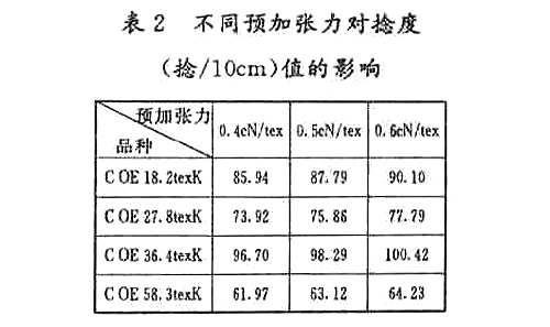 2 根據(jù)不同線密度與不同設(shè)計(jì)捻度施加不同的預(yù)加張力