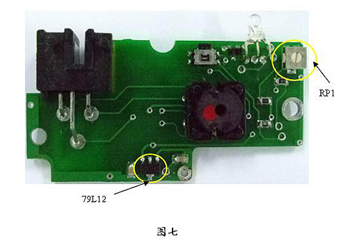 如果-15V正常,-12V處的電壓不在-11.7V~12.2V之間,那么就要更換79L12,位置如圖七所示。