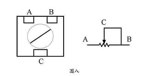 通過(guò)試調(diào)靈敏度調(diào)整電位器,靈敏度可在20mV~60mV的范圍內(nèi)可調(diào),3570mV的靈敏度已遠(yuǎn)遠(yuǎn)超出電位器的調(diào)整范圍,這說(shuō)明該檢測(cè)頭的電位器已經(jīng)損壞。S30檢測(cè)頭中的電位器(型號(hào)3314J-1-104, 原理圖中位號(hào)RP1)為易損器件,一旦有檢測(cè)頭被確定為故障頭,應(yīng)首先檢查電位器是否正常,電位器在檢測(cè)頭印制板的背面,見(jiàn)圖七所示:電位器有3個(gè)觸點(diǎn),如圖九中A、B、C三點(diǎn),用三用表測(cè)量電位器A、C兩點(diǎn)的電阻值應(yīng)在0~110K之間,若不在此范圍內(nèi),就需要更換電位器了。
