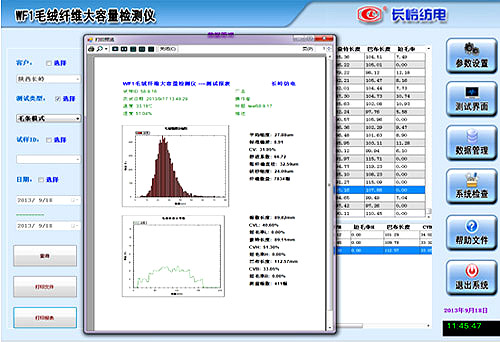 d)輸出指標:直徑、直徑CV值、根數(shù)長度、豪特長度、巴布長度、長度CV值、短毛率等