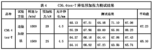 退捻加捻法對(duì)預(yù)加張力非常敏感。新標(biāo)準(zhǔn)規(guī)定的預(yù)加張力范圍為(0.50±0.10)cN/tex,即在捻度試驗(yàn)時(shí),針對(duì)某一線密度,其預(yù)加張力可以選(0.50±0.10)cN/tex,也可以選0.4cN/tex、0.50cN/tex、0.60cN/tex。(標(biāo)準(zhǔn)也沒(méi)有說(shuō)明線密度是公稱線密度,還是實(shí)際線密度。在紡紗實(shí)際生產(chǎn)中,絕大多數(shù)情況下,實(shí)際特克斯并不等于公稱特克斯,實(shí)際線密度與設(shè)計(jì)線密度常有一定偏差。在百米重量偏差較大的情況下,以公稱特克斯計(jì)算與以實(shí)際特克斯所計(jì)算的預(yù)加張力、捻系數(shù),其準(zhǔn)確性就會(huì)存在一定的偏差)。以CJ18.2tex K為例,其預(yù)加張力可以選擇為10.92cN,也可以選擇9.10cN、7.28cN。在捻度試驗(yàn)中試樣退、加捻時(shí),預(yù)加張力的不同,試樣退、加捻至捻縮達(dá)到初始長(zhǎng)度的快慢是不同的。這種快慢的不同,反映到試驗(yàn)結(jié)果上就是捻回?cái)?shù)的不同,CJ18.2tex K預(yù)加張力的選擇范圍大小差異近4cN,既然“退捻加捻法對(duì)預(yù)加張力非常敏感”,那么對(duì)于一個(gè)捻度試驗(yàn)預(yù)加張力加上4cN與減去4cN,對(duì)試驗(yàn)結(jié)果不會(huì)沒(méi)有影響。為具體說(shuō)明起見(jiàn),本文依據(jù)標(biāo)準(zhǔn)規(guī)定的(0.50±0.10)cN/tex,對(duì)CJ18.2tex K分別以0.4cN/tex、0.5cN/tex、0.6cN/tex的預(yù)加張力進(jìn)行捻度試驗(yàn),以探討不同預(yù)加張力對(duì)試驗(yàn)結(jié)果的影響。