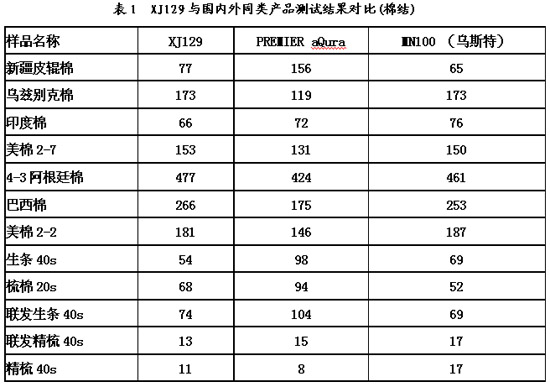 3.1 XJ129棉結(jié)數(shù)據(jù)與國內(nèi)外同類產(chǎn)品測試結(jié)果對比