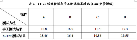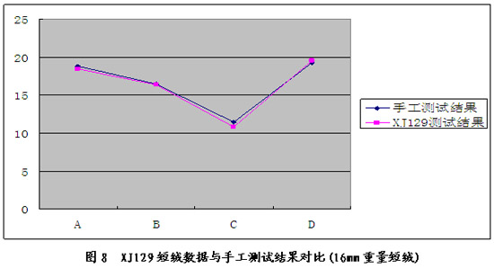 3.2 XJ129短絨數(shù)據(jù)與手工測試結(jié)果對比