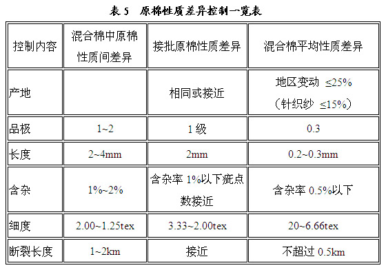 4)原棉性質(zhì)差異 采取“短中加長” 、“粗中加細(xì)”的配棉方法,有利于改善成紗條干和成紗強(qiáng)力,接批棉間的性質(zhì)差異越小越好。
