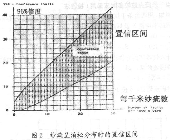 圖2 紗疵呈泊松分布時的置信區(qū)間