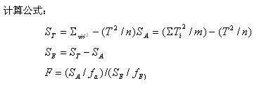 在本試驗(yàn)中,r=3,m=10,n=r•m=30,fT=n-1=29,fA=r-1=2,fE=fT-fA=27。