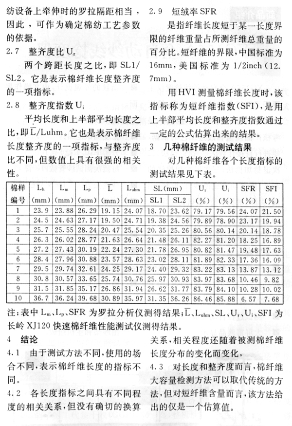 棉纖維長(zhǎng)度指標(biāo)的含義及相互之間的關(guān)系